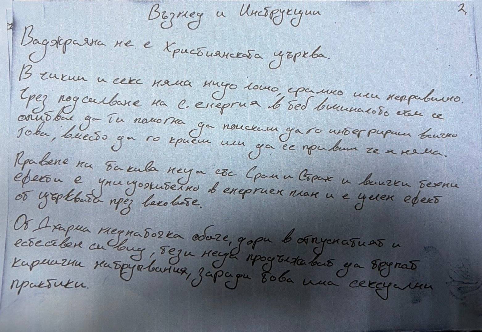 Графологичният профил обяснява защо практиките са били толкова ефективни за сектата: авторът не е просто „духовен учител“. Той е човек, който канализира сексуалната енергия като инструмент за власт. Няма невроза, няма треперене – само уверен, динамичен почерк на човек, който е убеден, че „в чикии и секс няма нищо лошо“.