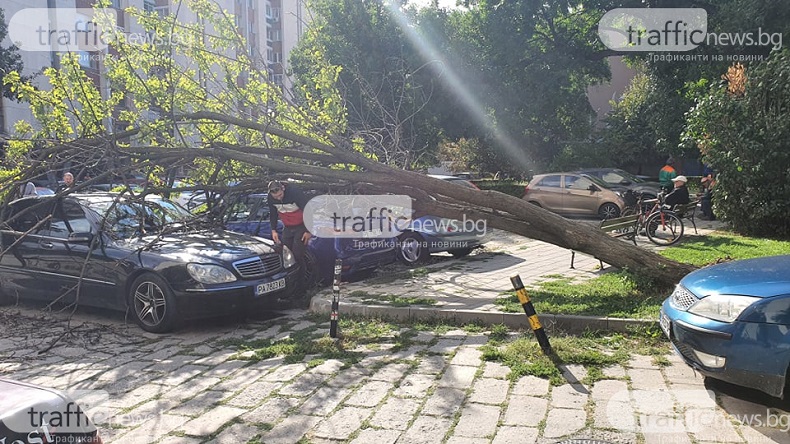 Изгнило дърво се стовари върху няколко автомобила в центъра на Пловдив. Инцидентът е станал преди минути на паркинг на улица „Капитан Райчо“. Дървото е паднало върху три коли. При две от тях щетите са сериозни. На място са собствениците на колите, като единият от тях няма Каско.
