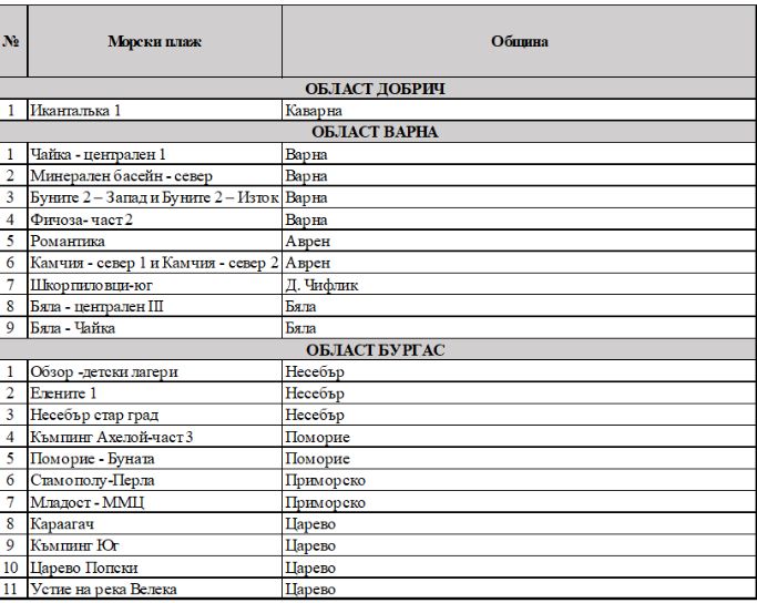 Ето и списък на плажовете, описани по местонахождението им от север на юг, а не по реда на обявяване на търга, както следва: