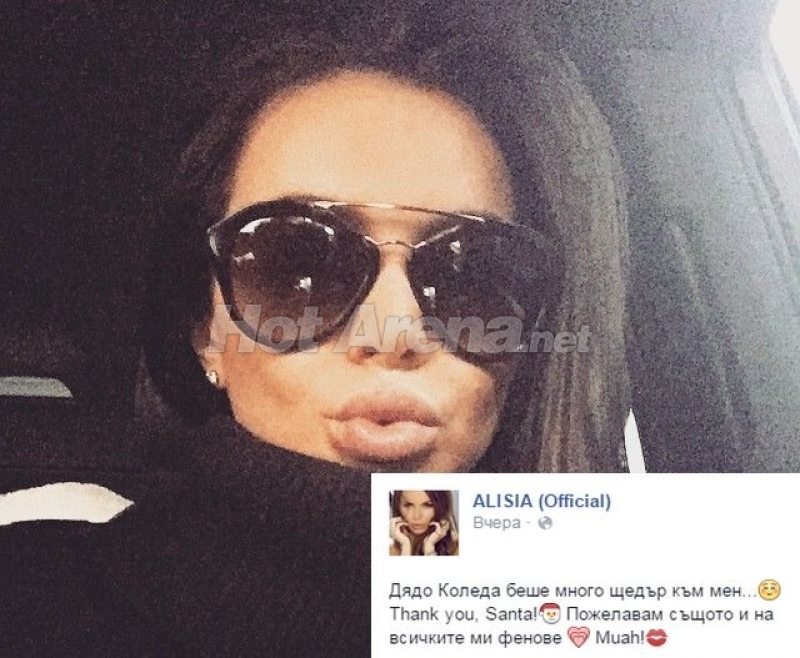 „Дядо Коледа беше много щедър към мен... Thank you, Santa! Пожелавам същото и на всичките ми фенове - Muah!“, написа в чисто кифленски стил фолк певицата Алисия в социалната мрежа.