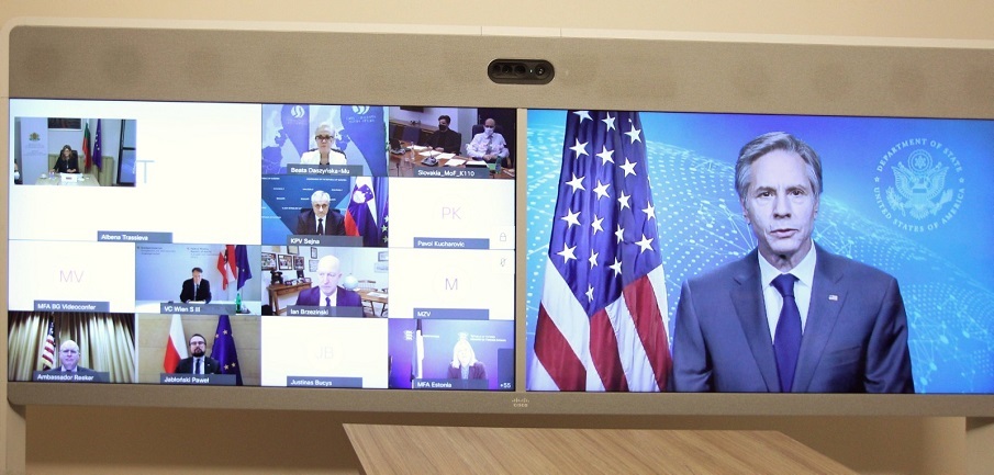 Във видеоконференцията участваха и партньорите на „Три морета“ САЩ, Германия и ЕС. Чрез специално видеообръщение към участниците в събитието държавният секретар на САЩ Антъни Блинкен пожела успех на българското председателство и потвърди подкрепата на САЩ за инициативата. В срещата участваха и външните министри на Естония – Ева-Мариа Лиймец, на Унгария Петер Сиярто, на Хърватия – Гордан Гърлич-Радман, които също изразиха пълна подкрепа за „Три морета“.