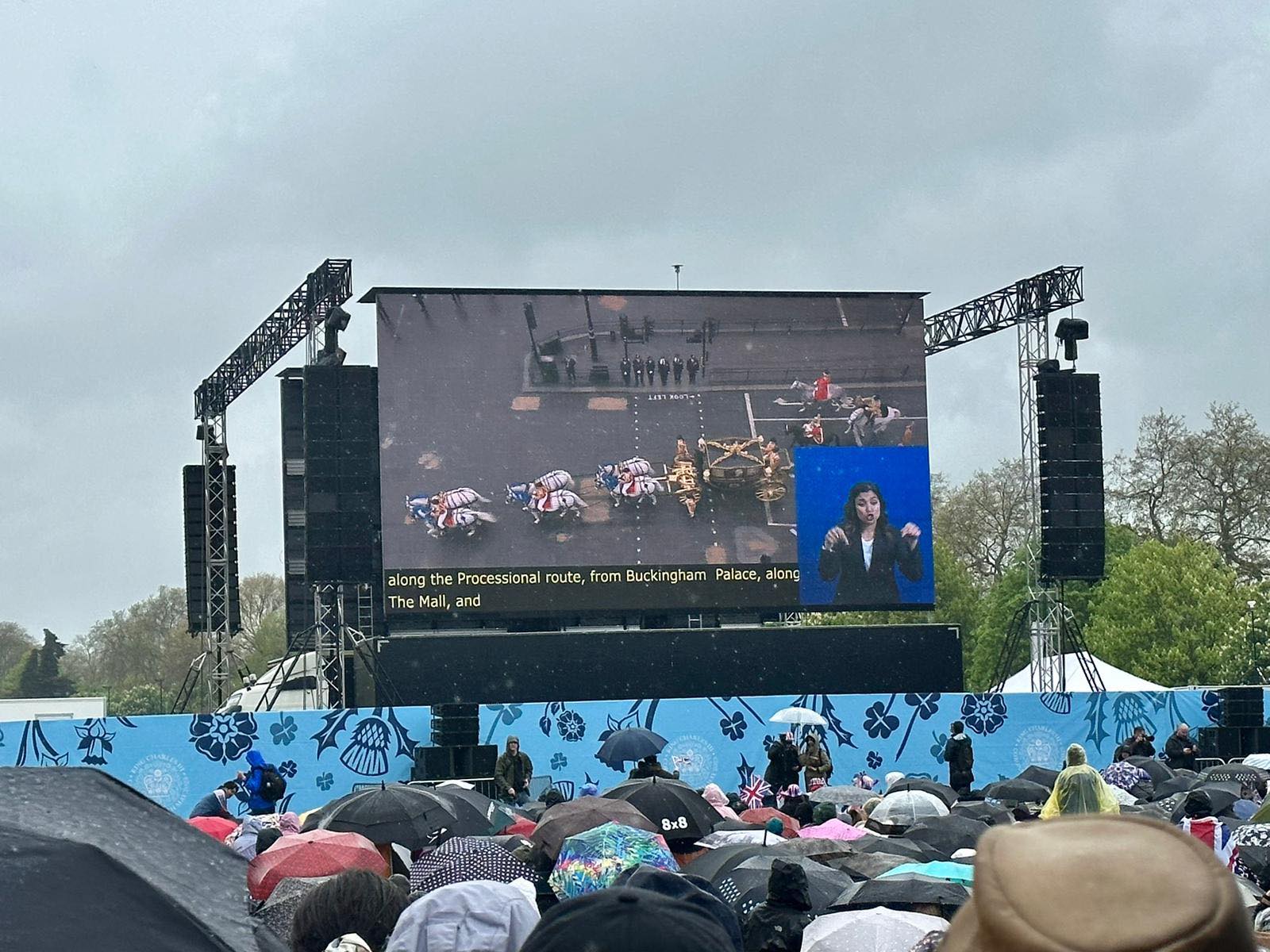 Журналистката Соня Колтуклиева предава пряко за ПИК TV от улиците на Лондон минути преди началото на главната церемония по коронясването на Чарлз II.