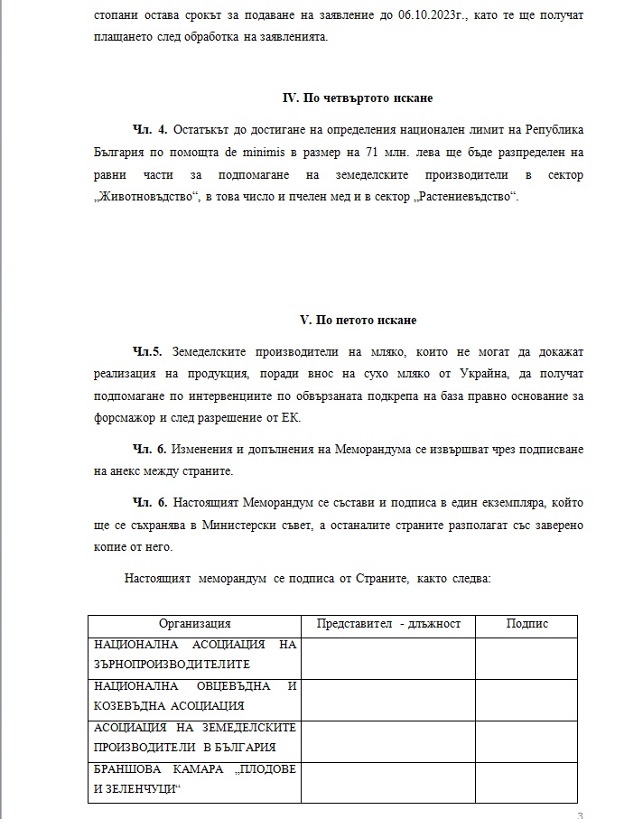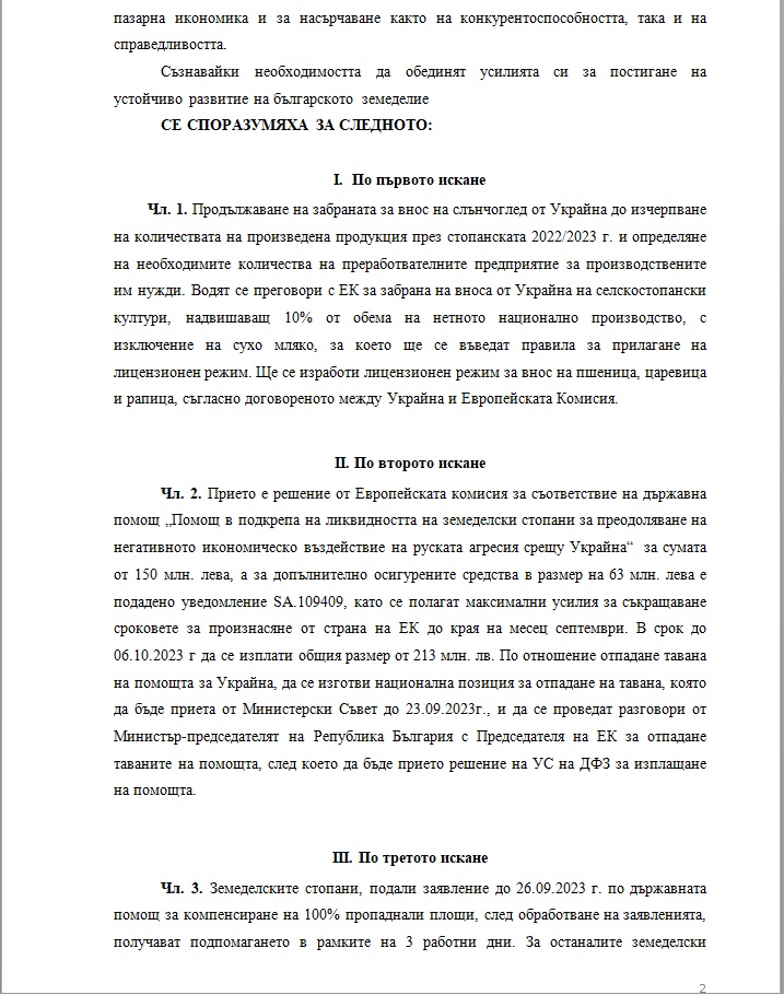 ПИК се сдоби и с документа, който регламентира постигнатото споразумение между производителите и правителството.