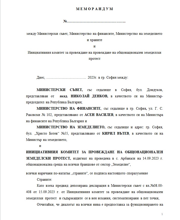 ЕКСКЛУЗИВНО В ПИК! Ето го меморандума, който усмири земеделците - тракторите се прибират (ДОКУМЕНТ)