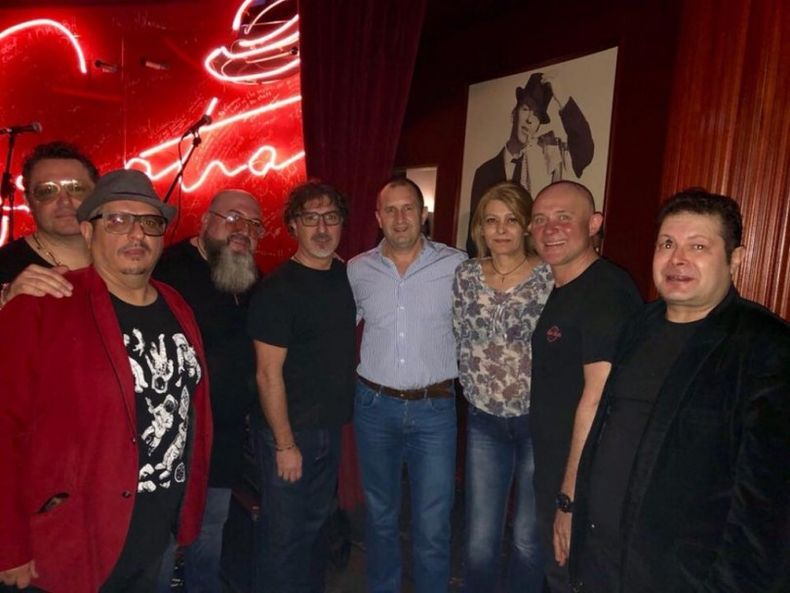 Първата дама е почитателка на твърдия рок, но често ходи и на пиано барове. На снимката позира с музикантите от „Акага“ след тяхно участие в столичния пиано бар „Синатра“.