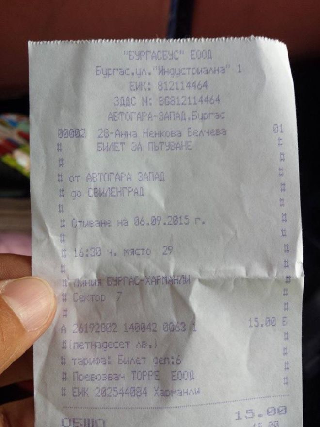 „Платих 15 лева за билет и в крайна сметка се возих прав в претъпкан автобус. Уж имаше климатик, но той не успяваше по никакъв начин да охлади въздуха в купето на превозното средство. Фирмата превозвач се казва „Торре” и никога повече няма да ползвам услугите й”, разказа още той и допълва, че част от пътниците са седели един върху друг, за да има повече място за останалите или поне някой друг да поседне частично.