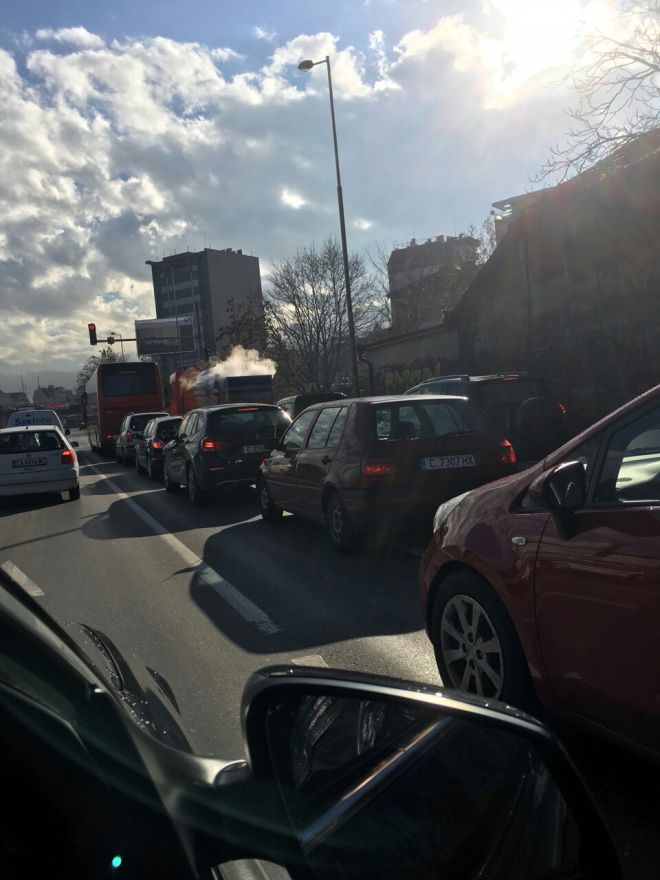 Грамадна цистерна се движи по централните столични артерии и изпуска облаци от газ, видя човек на ПИК.