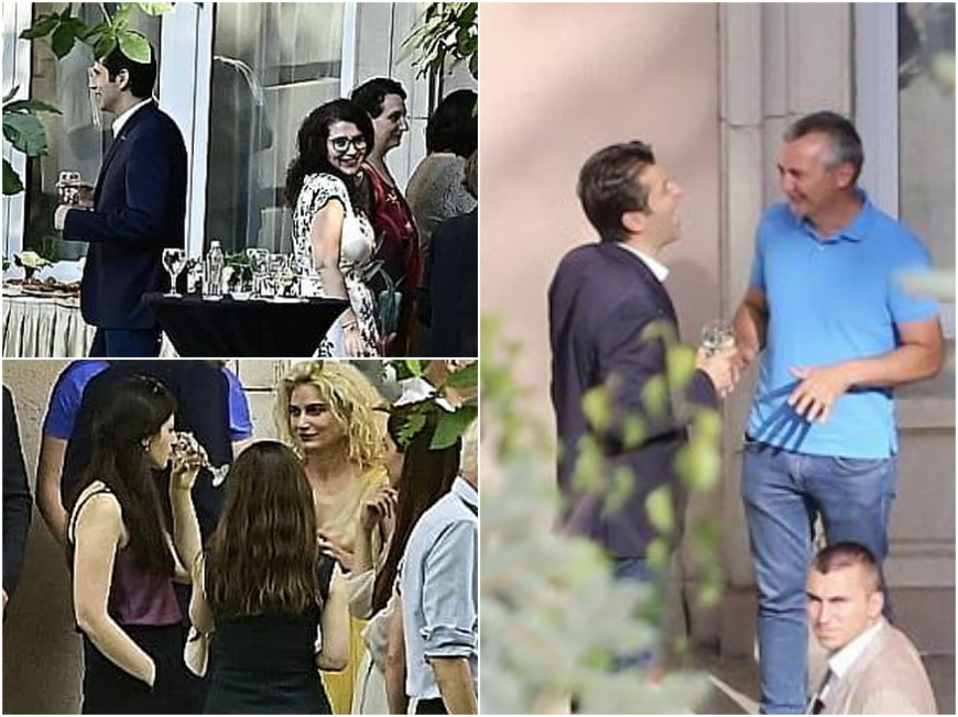 Градинската забава, придружена със скъпо вино и вкусна храна, започна в 17.00 часа, а половин час по-късно Кирил Петков изнесе и кратка реч.