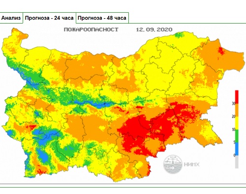 НИМХ: Екстремален индекс за опасност от пожари има за 5 области