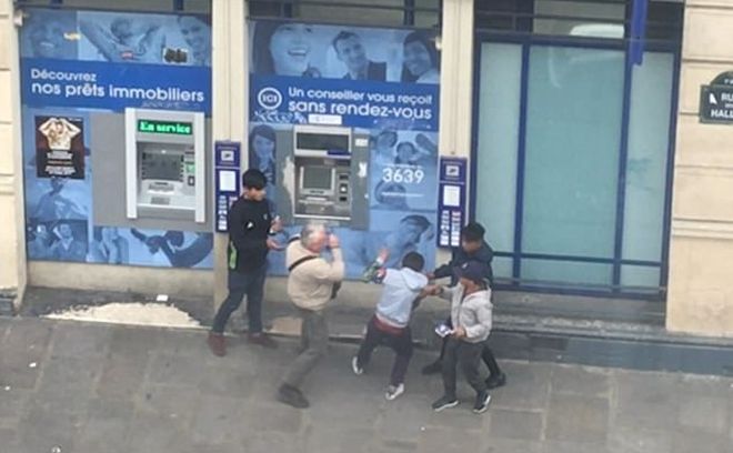 „Това бе тревожна сцена. Мъжът бе сам срещу няколко, а момчетата очевидно се опитваха да го оберат. Той изглеждаше изключително изплашен, но искаше да се защити”, разказа очевидец. Инцидентът е станал в район на френската столица, до банкомат близо до „Нотр Дам” и Лувъра, станал магнит за престъпниците. От полицията съобщават, че банкоматът е нападан по 20 пъти на ден от банди от България и Румъния.