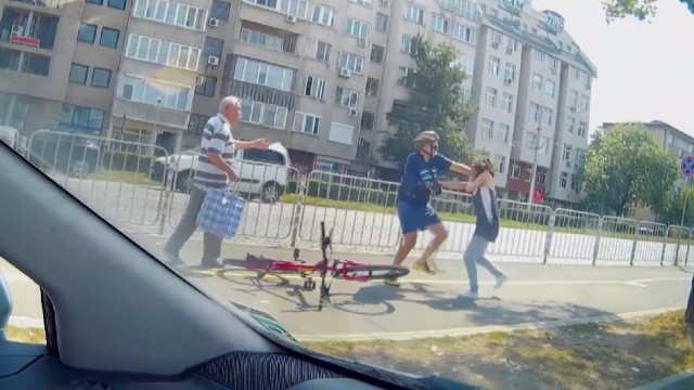 Шокиращи кадри от инцидент на столичния булевард "Цар Борис Трети". Колоездач и пешеходка се сбиха край велоалея пред "Пирогов". Случката се разиграва вчера по обед, а случаен минувач заснема скандала и качва видеото в интернет.