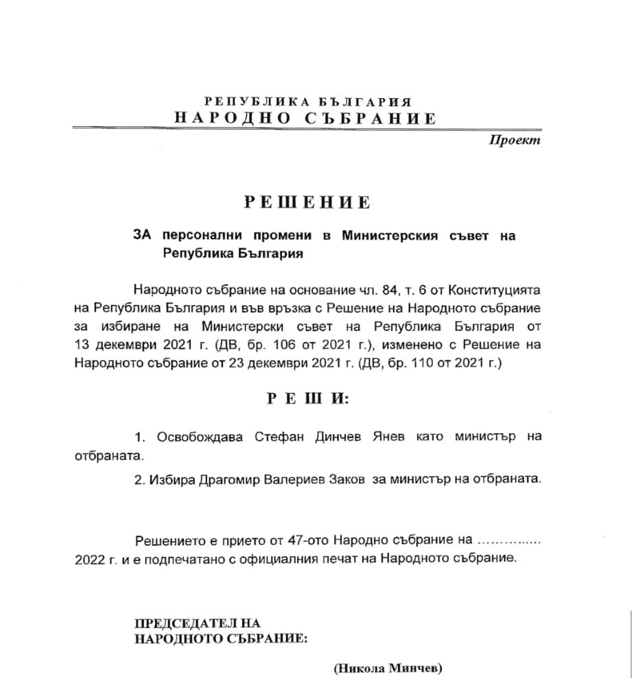 След среднощни совалки и множество скандали коалицията се е спряла на името на Драгомир Заков, който е постоянен представител на България в НАТО. Същият е бил помолен да стане военен министър буквално преди минути, затова и все още не в парламента, а в момента лети от Брюксел към България.