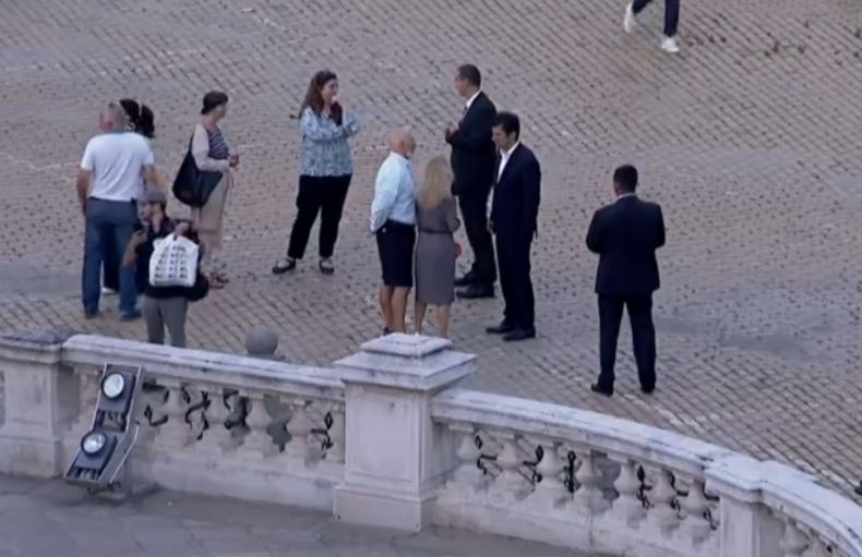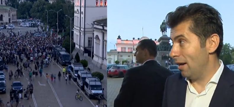 Сред тълпата протестиращи бе забелязан и министър Еконт - по бермуди и с бяла риза. Той си размени дружеска раздумка с Кирил Петков. Просто Киро очевидно е в еуфория и щъка насам-натам - ту влиза в парламента, ту излиза, за да се "слее с тълпата".