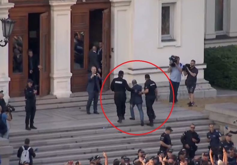 Побеснели протестъри обаче му скочиха. Срещу депутата от ИТН полетяха бутилки от минерална вода, а най-близко стоящите се опитаха да му нанесат удари. Полицаи от охраняващия кордон издърпаха Йорданов назад към сградата и го вкараха вътре, за да не "дразни" тълпата и да не се стигне до по-ожесточени ексцесии.