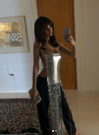 Актрисата и инфлуенсърка сподели първата си снимка за 2022 г., която е подбрана доста внимателно. За визията си е избрала интересен сребърен топ с тънки презрамки, очевидно без сутиен, и дълъг черен панталон. Облеклото на Емили може да се определи за "консервативно", ако разгледаме предишни снимки, които е поствала в социалната мрежа.
