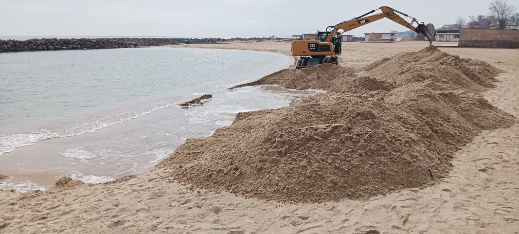 Багер се появи на плаж Аурелия в Равда. Тежката техника копае и загребва пясъка от плажа в днешния почивен ден.