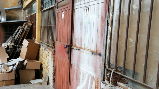 Следите от кървавото престъпление обаче все още си личат. В склада се вижда огромна локва кръв на пода между струпаните материали. На площадката пред вратата на работното хале има няколко кървави петна, които все още не са засъхнали след вчерашната екзекуция.