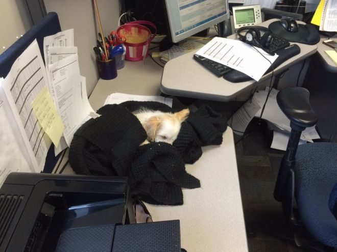 Кучето-шофьор обаче било доста наплашето от сблъсъка в магазина. За изясняване на случая се е наложило и то, и стопанката му да бъдат привикани в полицейския участък. Там след изживения стрес четириногият драйвър заспал блажено край бюрото на разследващия инцидента полицай.
