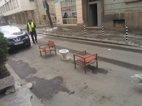 Ето как пазят място за паркиране пред ресторант в центъра на София (уникална снимка)