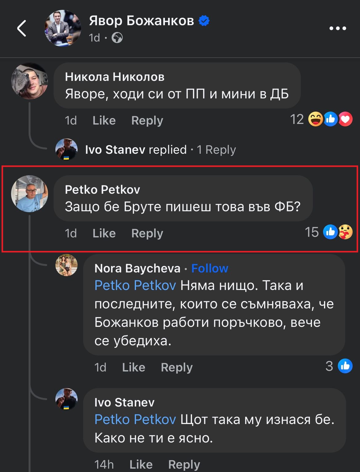 Явор Божанков е трънче в очите не само на Лена Бориславова и Кирил Петков, но и на Татко Петко, забеляза ПИК.