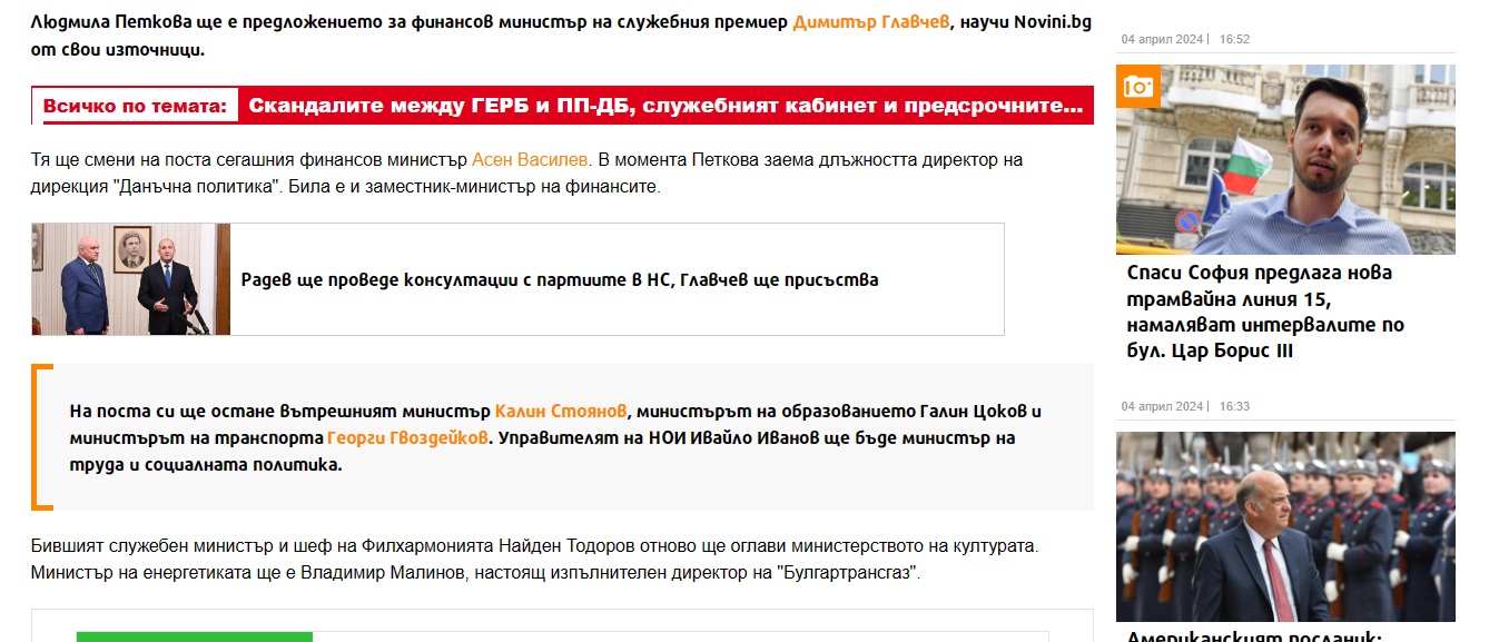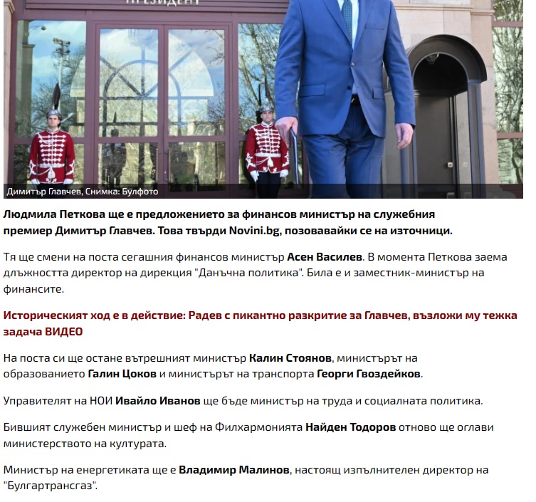 Б.а. Обърнете внимание, че двата сайта дори не са си направили труда да променят словореда на изреченията. В бързината дори сме допуснали грешка, изкопирана, разбира се, от преписвачите от "Новини.бг" и "Блиц". Написали сме в първото изречение "служебния премиер Димитър Главчев". Само че Главчев все още е кандидат за служебен премиер и докато Румен Радев не подпише указа, той не се води премиер. Нищо чудно "колегите" от двата сайта дори да не са си направили труда да прочетат текста и затова да не са видели грешката.