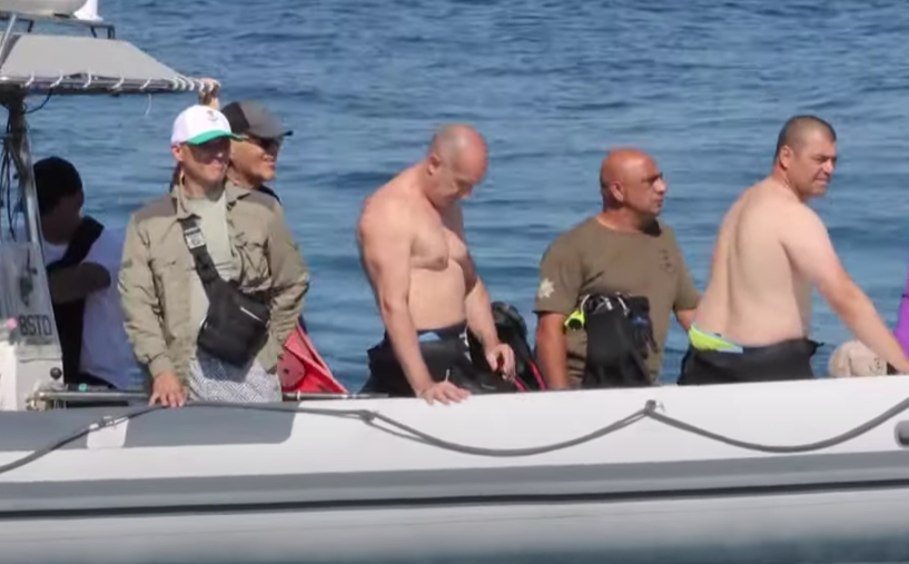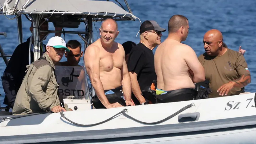 След това сложи и водолазен костюм и показа умения в гмуркането. После пък, дори без да се преоблече, даде брифинг с гумения тоалет по повод назначаването на главен секретар на МВР и президентската кампания.