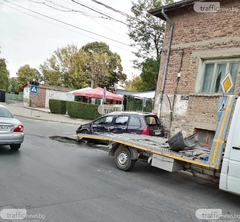 Инцидентът е станал в района на пешеходна пътека, а автомобилът "Пежо", ударен в лявата му страна, се е спрял в къща на тротоара. Като по чудо няма пострадали пешеходци, предаде Трафикнюз.