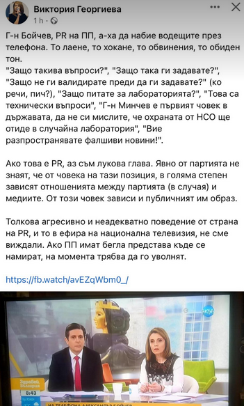 Толкова агресивно и неадекватно поведение от страна на PR, и то в ефира на национална телевизия, не сме виждали. Ако ПП имат бегла представа къде се намират, на момента трябва да го уволнят."