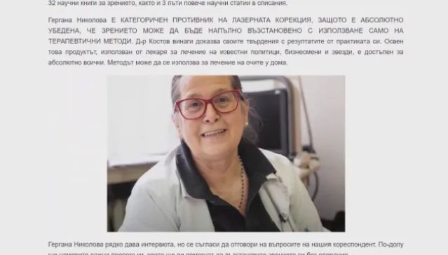 Самата д-р Николова разбира преди дни, че името ѝ е споменато в статия, рекламираща лекарство за зрение.