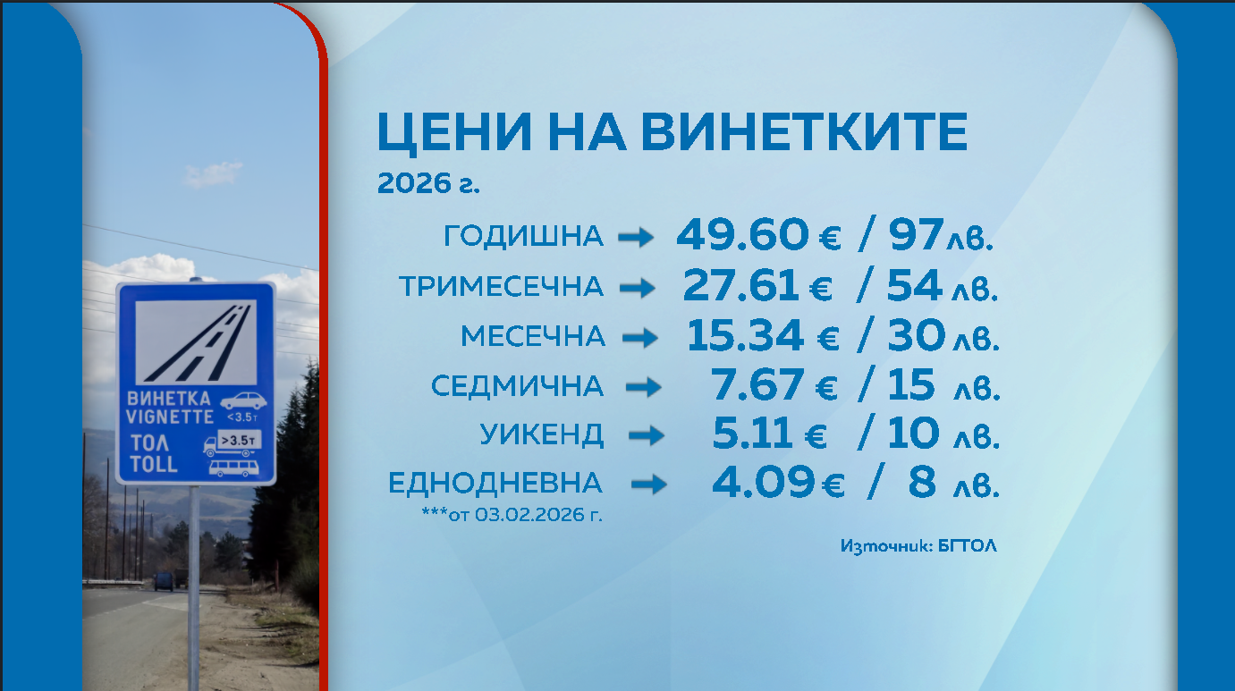 Еднодневната винетка влиза в продажба на терминалите на самообслужване по бензиностанциите и в другите търговски обекти в страната от 3 февруари.