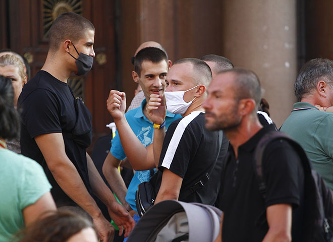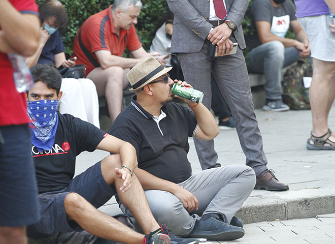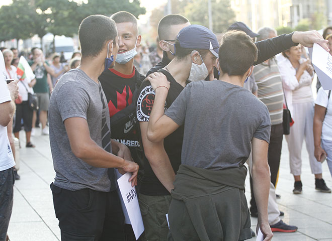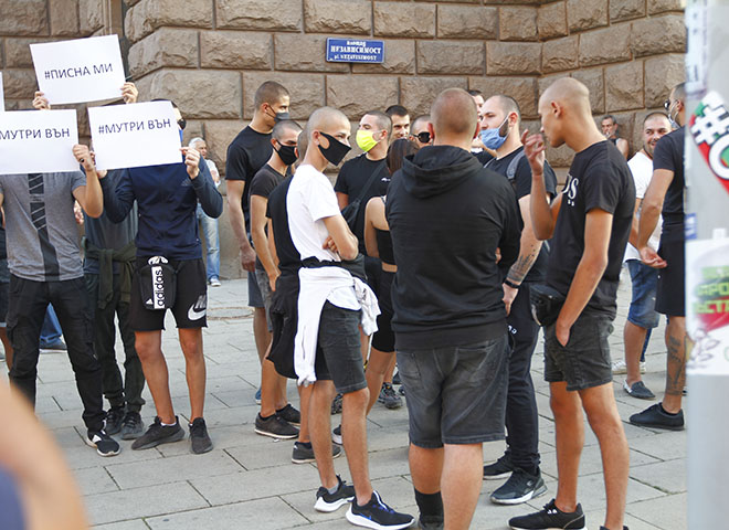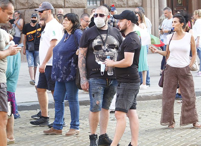Само за няколко минути въпросните младежи се сляха с хората, които в момента на площада са около 200 в най-пълния си обем. Призиви да не се отказват днес дойдоха първо от хазартния бос с 19 обвинения Васил Божков. Не закъсня и "подкрепата" от метежника Румен Радев, отново през фейсбук, който за пореден път си позволи да нападне полицията. Сред тълпата се забелязват и едри батки с татуировки, които обаче не стоят на групички, а наблюдават отстрани.