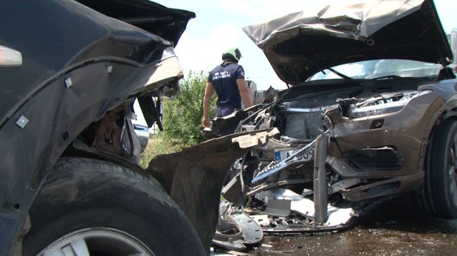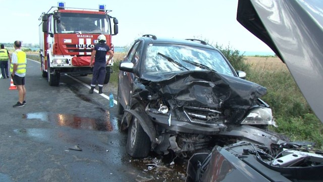 Трети шофьор, за да избегне удара, се блъска в мантинелата. Пострадали са двама души, които са без опасност за живота. Катастрофата предизвика километрични задръствания и в двете посоки.