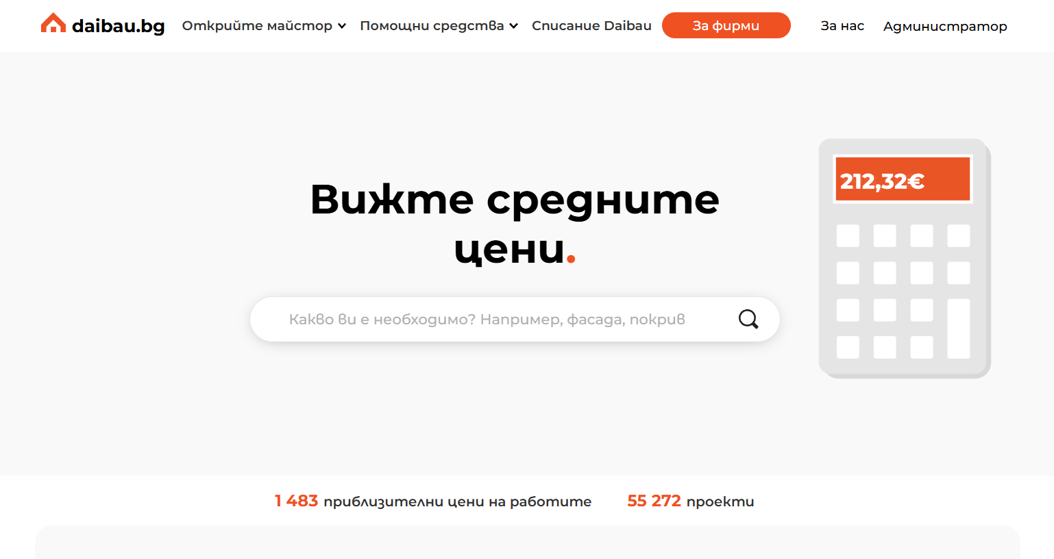 Още едно предимство, което потребителите често изтъкват, е Калкулаторът на цените. В платформата Daibau могат да се намерят над 1 500 цени (ориентировъчни цени в България) за над 200 строителни категории - от бояджийски услуги, през изолация и поставяне на дограма, та чак до мащабни строителни проекти.