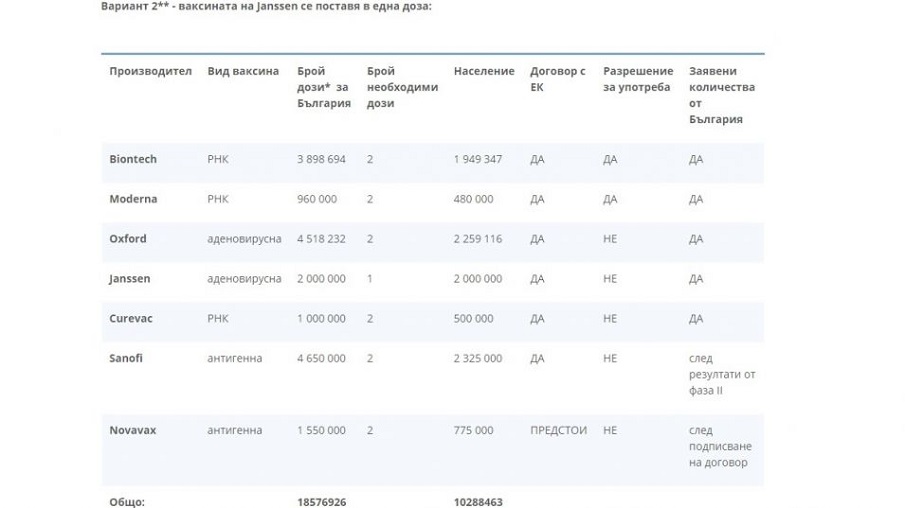 Посочените количества са индикативни и е възможно да настъпят промени в зависимост от производствения капацитет на всяка компания, уточняват от МЗ.