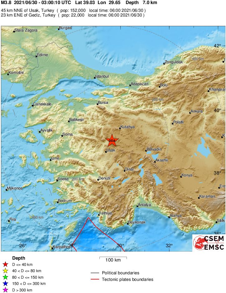 Трусът е регистриран в 6:00 часа на дълбочина 7 километра. Епицентърът му е бил в района на град Гедиз.