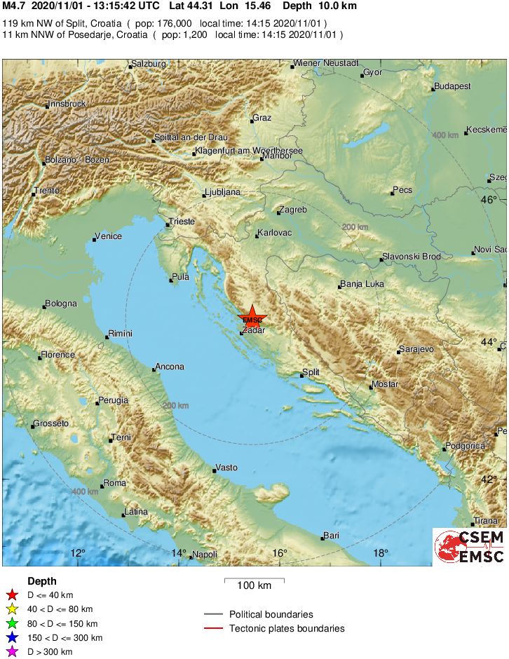 По данни на Европейско-средиземноморския сеизмологичен център епицентърът на труса е бил на 16 километра северозападно от град Поседаре. Земетресението е усетено в района на Задар, Сплит и други части на Далмация. Засега няма информация за щети.
