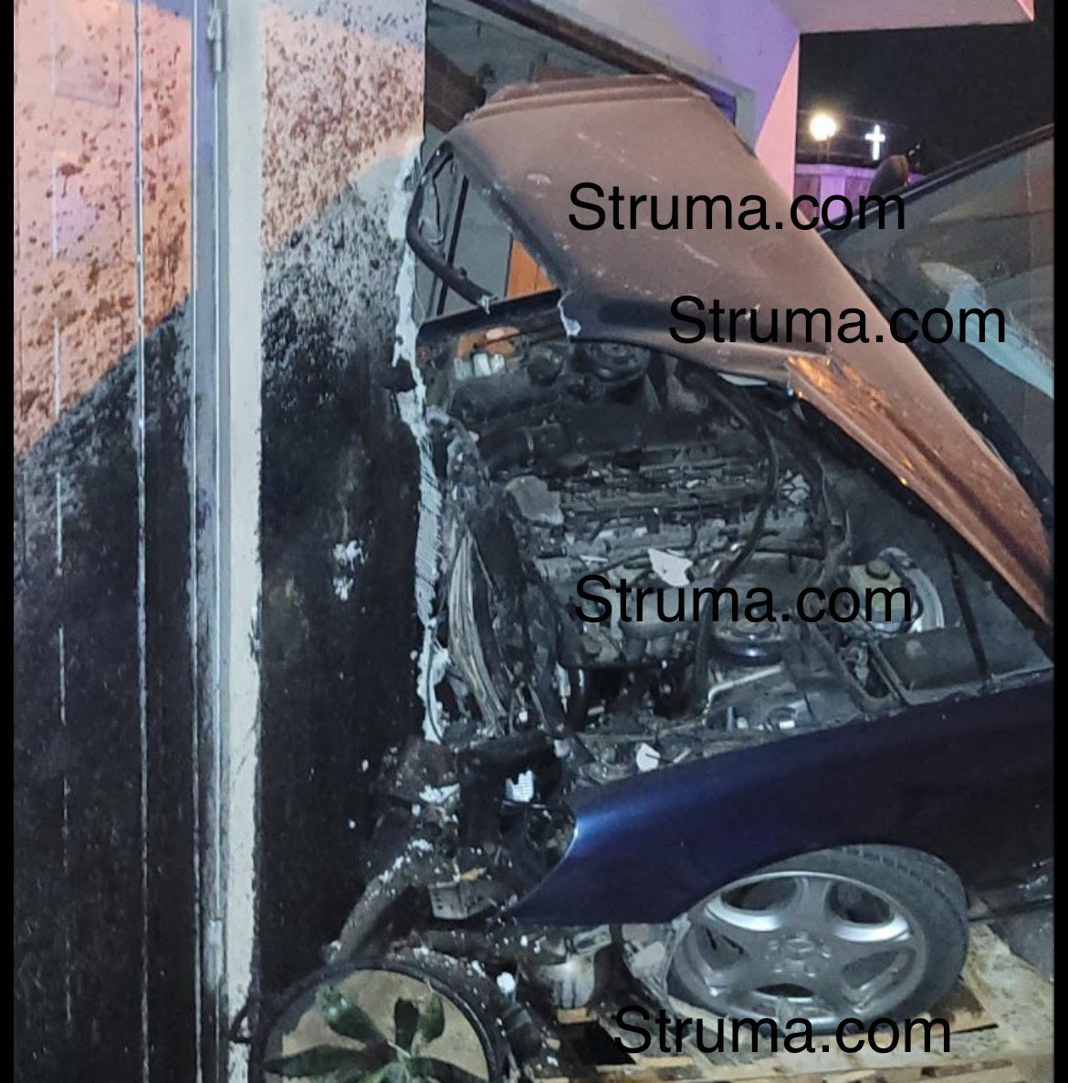 Зловещ трясък раздра тишината на улица" Хан Омуртаг" в Благоевград тази нощ. Около 01. 00 часа шофьор с висока скорост влетя с колата си, " Мерцедес S клас", в двора на една от къщите и се заби в гараж, съобщи струма.ком. Цяло чудо е, че след тежкия инцидент няма пострадали хора от къщата или случайни минувачи по улицата, която според живеещите там е трасе за гонки, по което пилят гуми, търсачи на силни усещания.