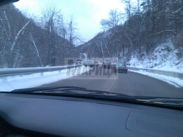 На местопроизшествието веднага са пристигнали екипи на полицията. Пътните полицаи регулират движението. Образували са се колони от автомобили и от двете страни на пътното платно. Колоната в посока Пловдив е почти 500 метра.