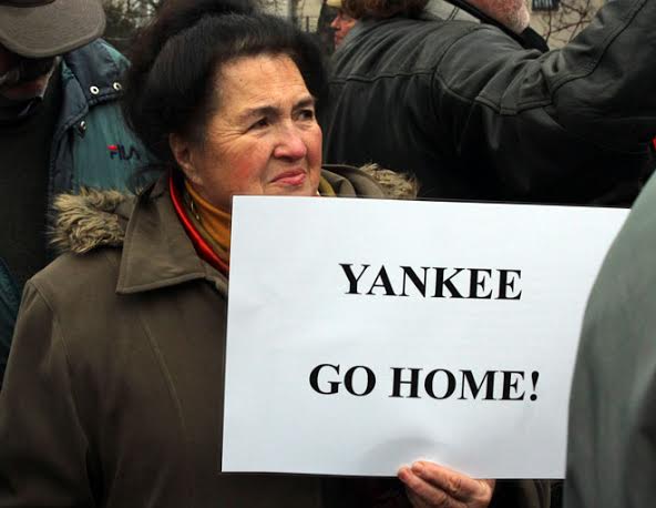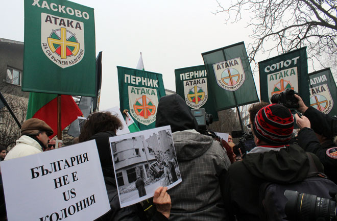Знамена и надписи "Янки, вървете си" на протеста на "Атака" пред посолството на САЩ (снимки)