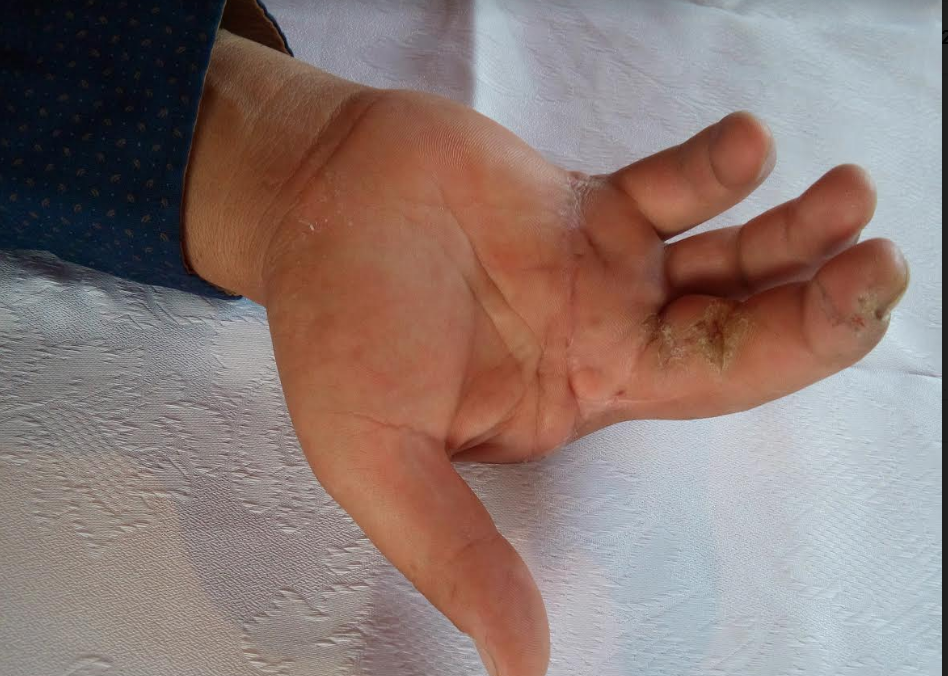 Последваха 11 – до момента – операции в „Пирогов“, като първоначално лекарите се опитваха да възстановят отрязаните пръсти. Но впоследствие се получиха усложнения, ПОКАЗАЛЕЦЪТ беше ампутиран, а в момента и средният пръст е със сериозен оток и вероятно го очаква същото. Останалите са без чувствителност и подвижност, цялата ръка периодично се възпалява и подува.