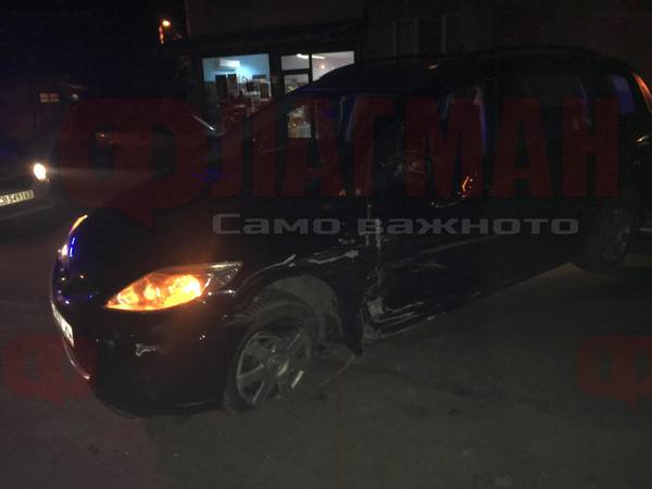 Сивото БМВ е с натрошена задна част от каскадата. Третият участник в мелето е черна "Мазда", която също е със сериозни материални щети.