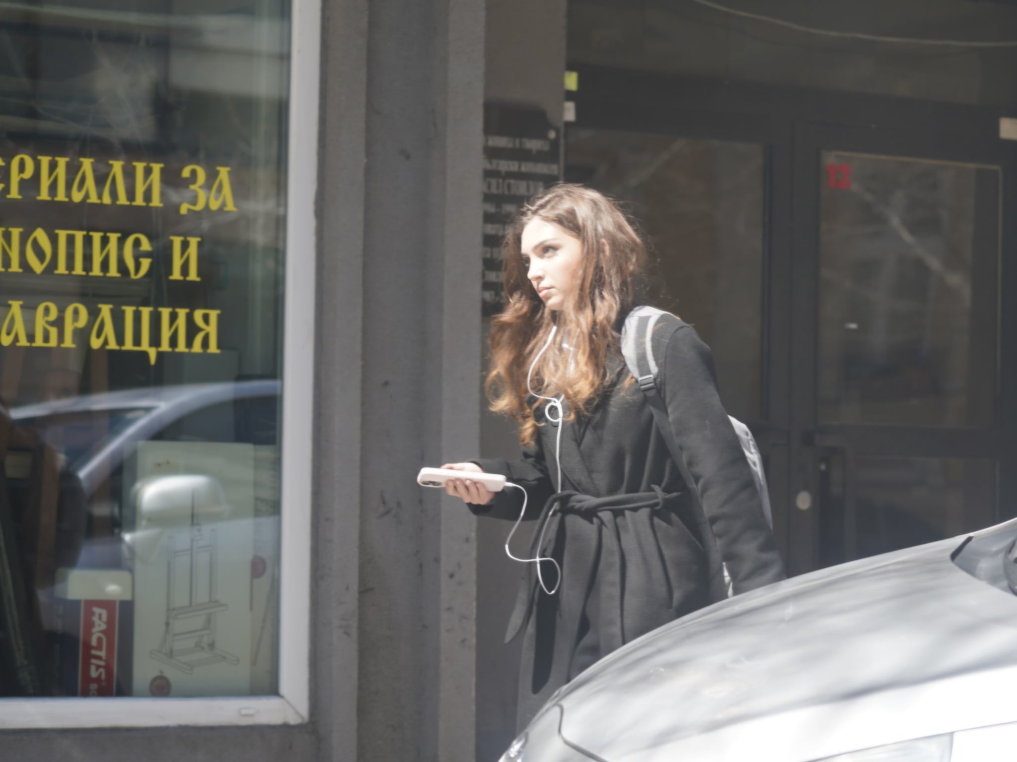Зоркото око на репортер на ПИК засече 23-годишната госпожица да вее балтонче в неочакваните априлски жеги. Очевидно Бодакова не е на ти с локациите в центъра на столицата, затова обикаля с GPS, за да се добере до желаната дестинация.