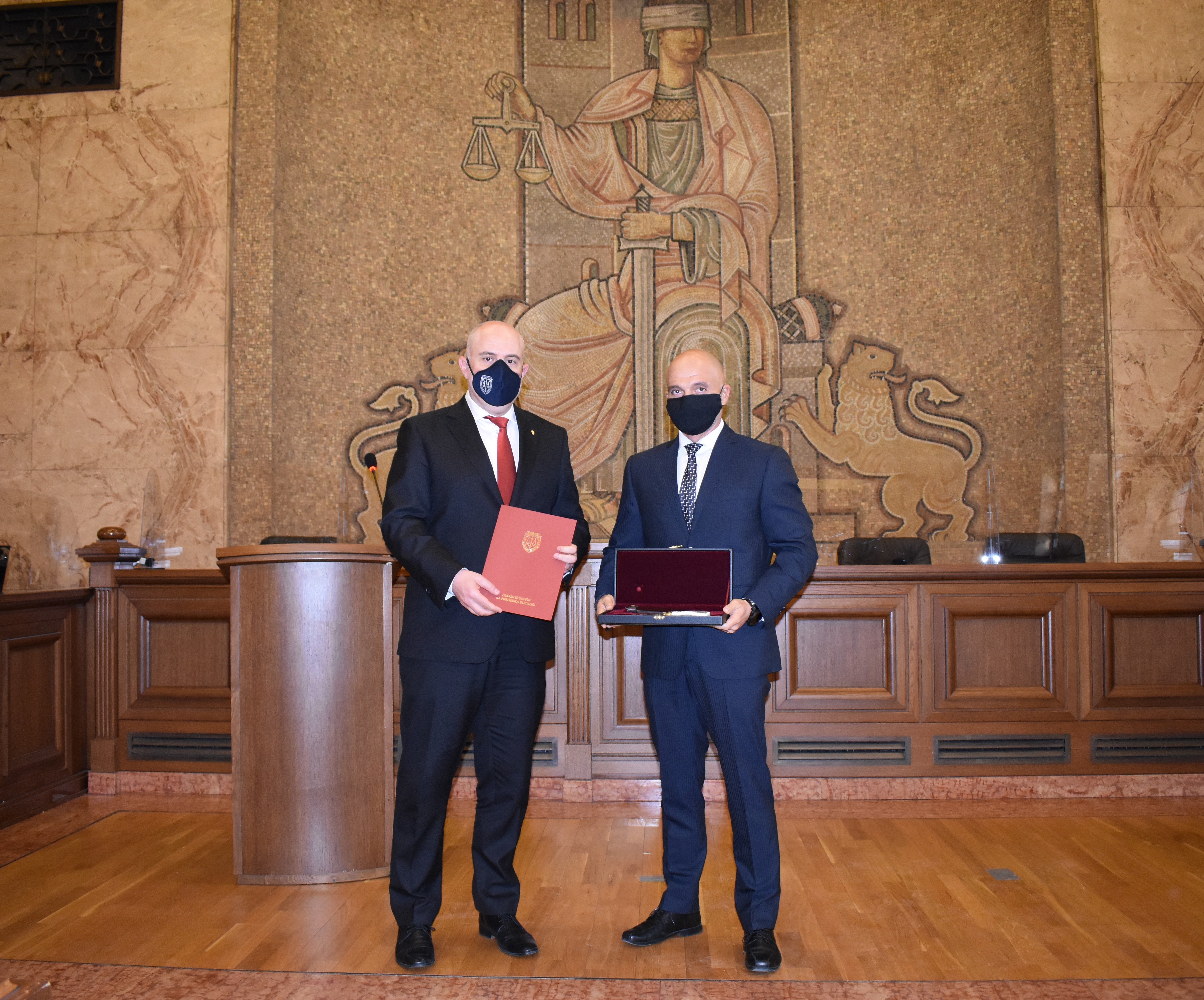 Днес, 02.04.2021 г., на официална церемония в зала „Тържествена“ на Съдебната палата, главният прокурор на Република България Иван Гешев награди прокурори, следователи, съдебни служители и служители от Бюро по защита, както и представители на Служба „Военно разузнаване“, Държавна агенция „Национална сигурност“, Министерство на вътрешните работи и Главна дирекция „Съдебна охрана“.