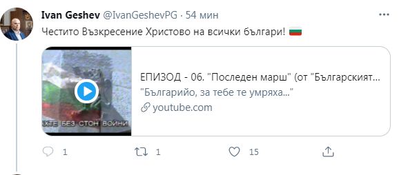 Главният прокурор Иван Гешев честити Великден в Туитър.