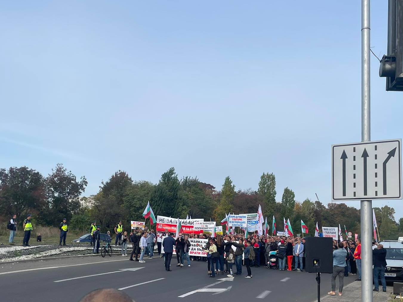 В 10,16 часа към множеството челно се отправи автобус на градския транспорт за близките кв. Ветрен и Банево. Екиът ни видя, че екзалтираните работници и служители намалиха виковете и възпитано направиха коридор за преминаването му. Началникът на "Охранителна полиция и КАТ" към ОДМВР-Бургас комисар Марин Димитров, който също е на мястото и обикаля своите постове, регулиращи движението, за да предотврати тежки инциденти с изнервени шофьори, заяви следното: "Имаме споразумение затварянето на едното платно на този главен път към магистралата действително да продължи до 12 часа и да се пропускат автобусите на градския транспорт, линейките, пожарната и гражданска защита.