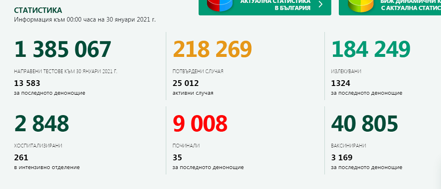 Доказаните случаи на новия коронавирус у нас са общо 218 269. От тях активни са 25 012 случая.