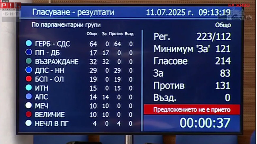 Вотът не мина. За гласуваха само 83-ма, против бяха 131.