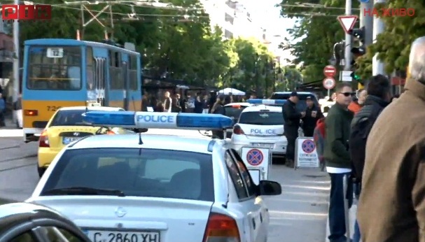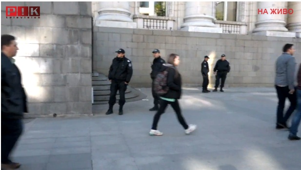 Сградата е обградена от полиция, а улиците наоколо от коли на МВР и жандармерията. Полицаите и журналистите обаче са повече не само от протестиращите, но и от минувачите.
