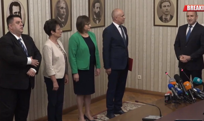 Въпреки крайно влошените отношения между Радев и лидерката на БСП Корнелия Нинова, президентът дава последния мандат на столетницата за трети път преди да разпусне парламента и да назначи служебно правителство.