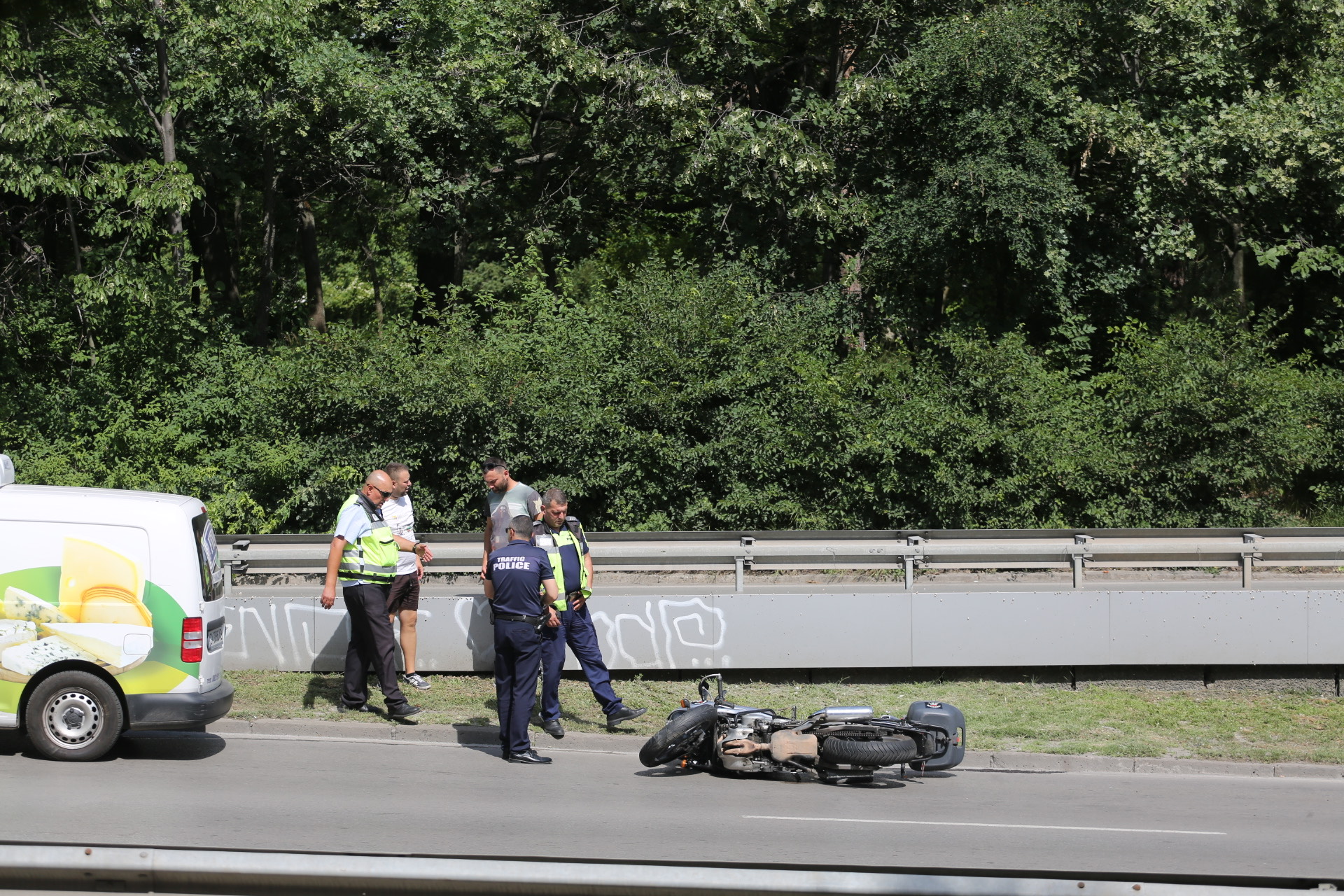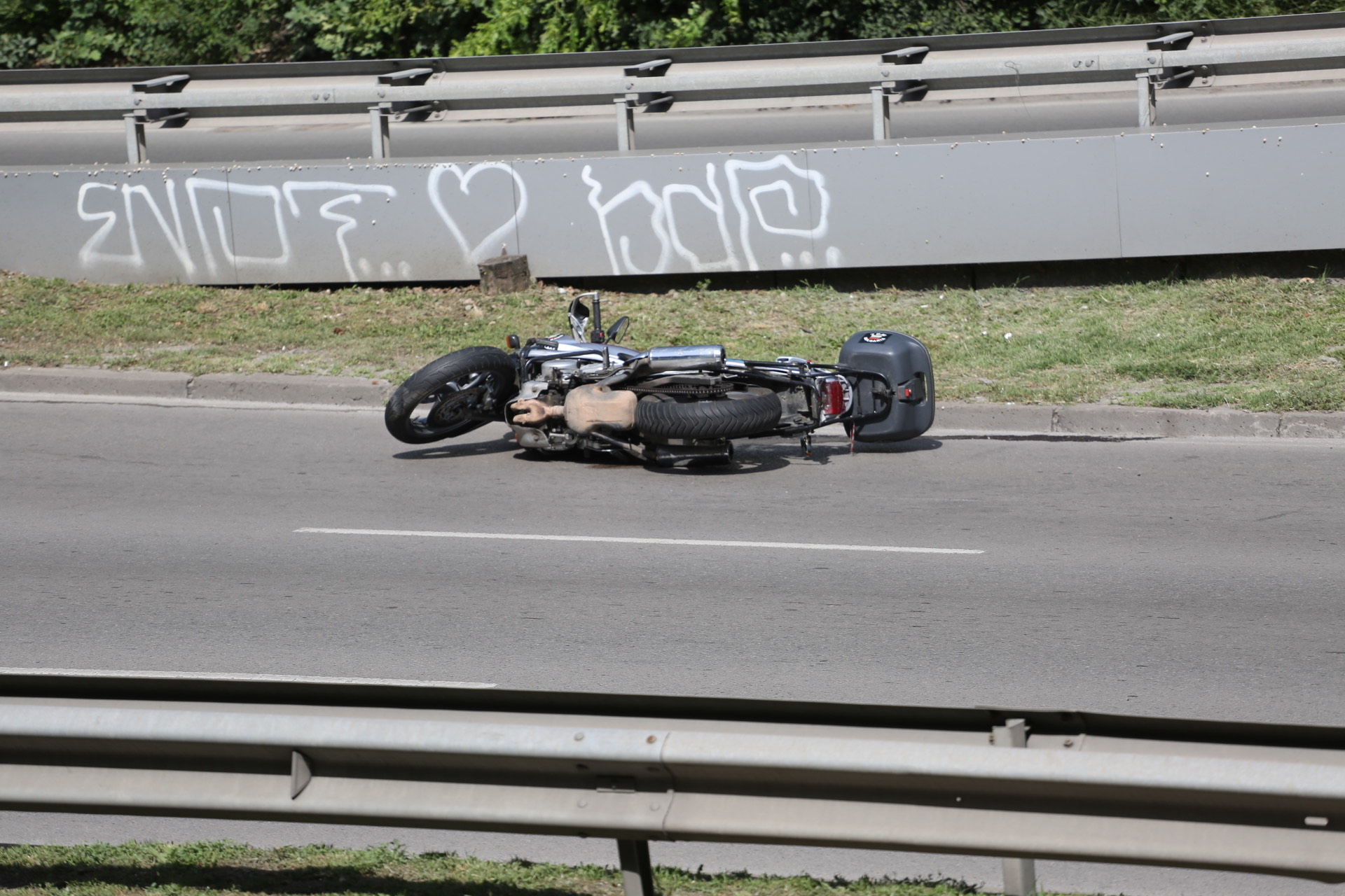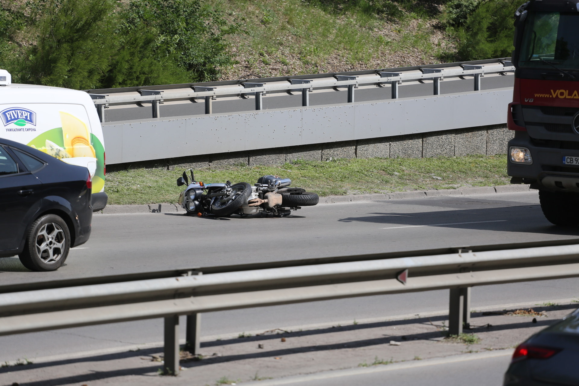 Катастрофа с моторист затрудни сериозно движението на булевард "Пейо Яворов", близо до Телевизионната кула, в посока Румънското посолство.